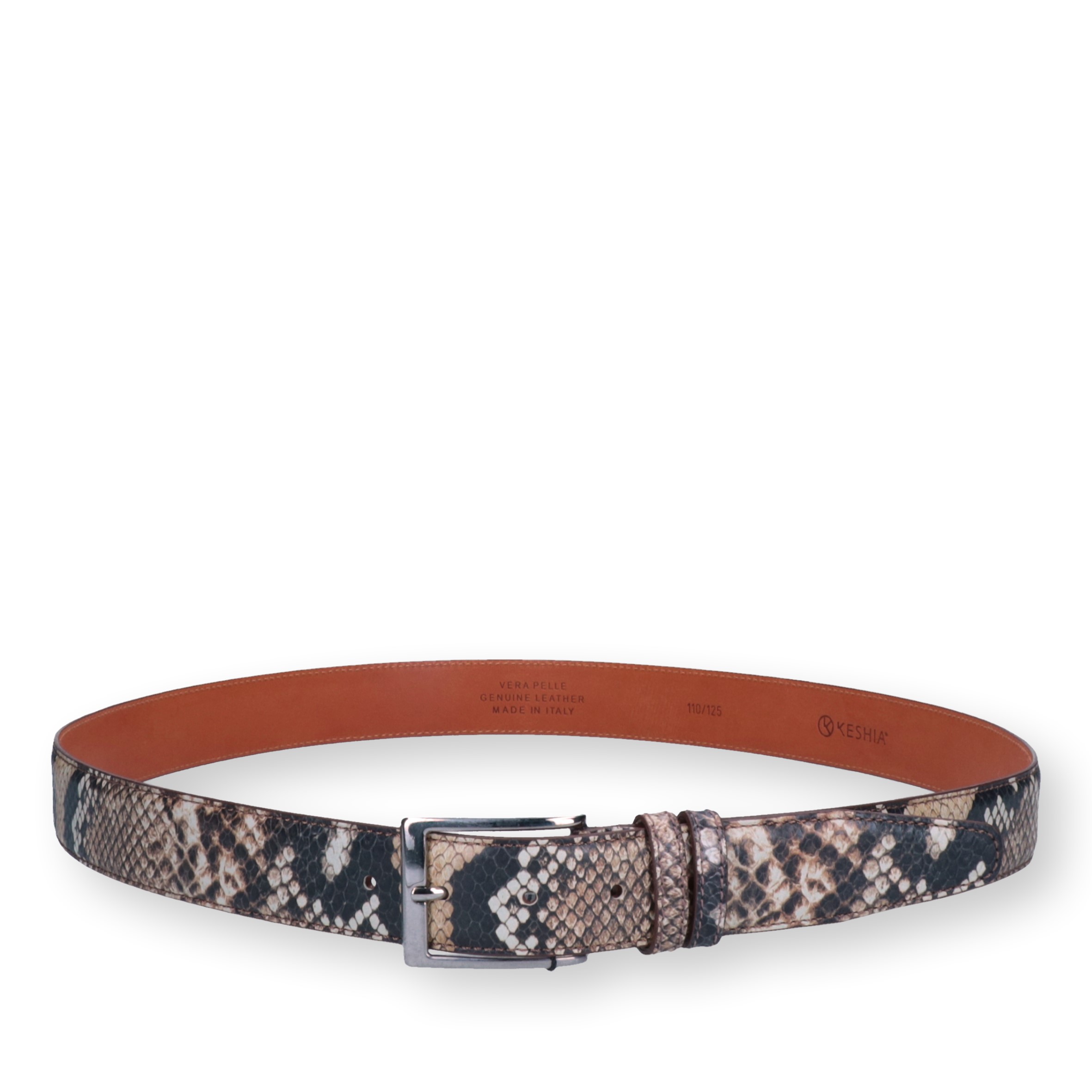 Cintura uomo in pelle stampa pitone, made in italy. Altezza 3 cm. Parte interna della cintura in vera pelle