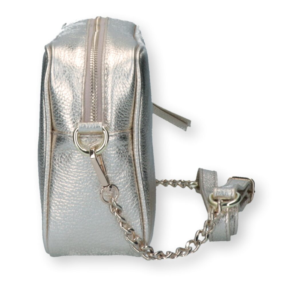Borsa a tracolla in vera pelle, La borsa si chiuse con zip. interno foderato con tasche porta oggetti, tracolla in pelle e catena