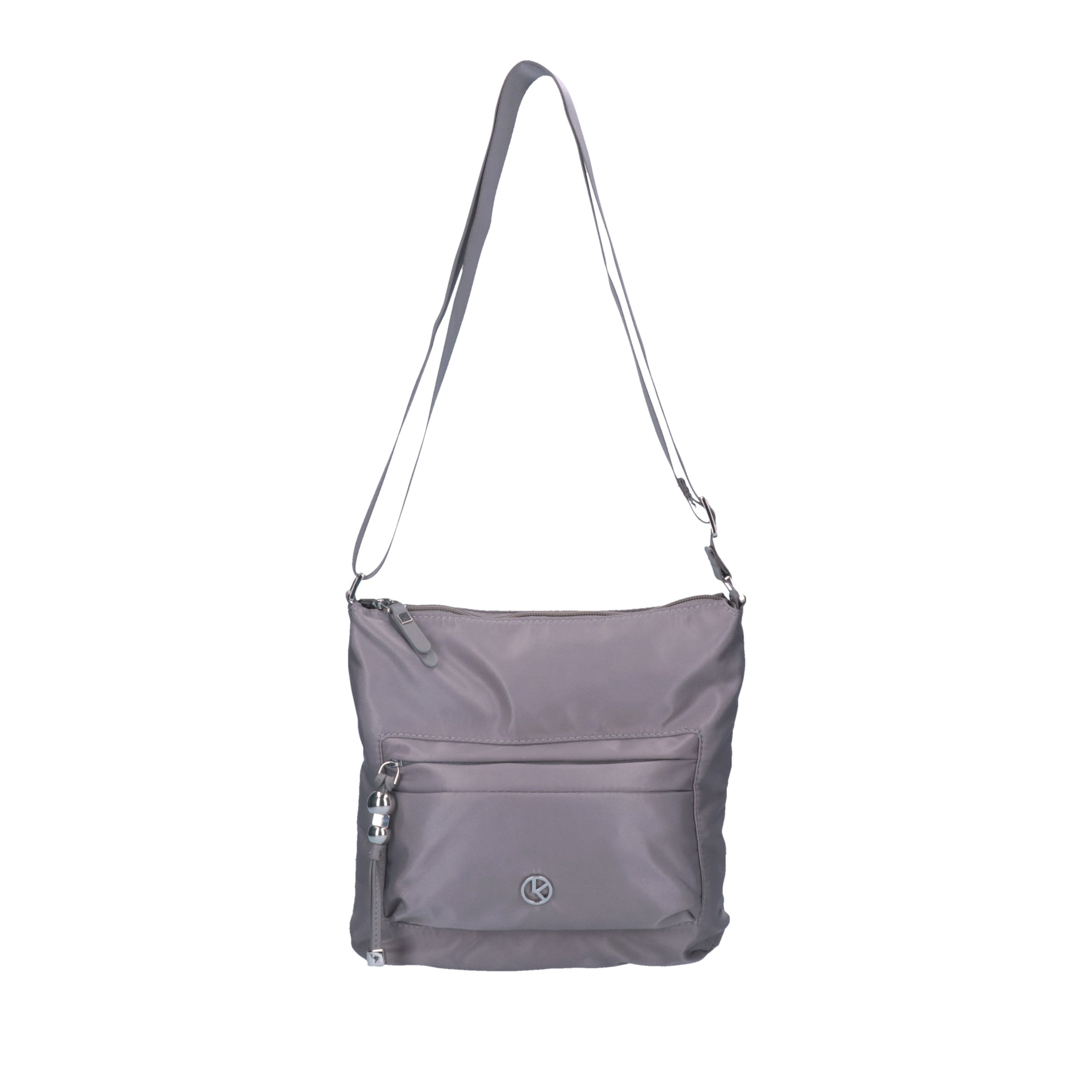 Borsa a tracolla in nylon antistrappo dotata di tracolla di nastro regolabile. Sul davanti presenta una comoda tasche con zip a scomparsa , sui fianchi ha due tasche chiuse con cerniera. Comoda zip anche sul retro, all’interno fodera in tono, tasca portacellulare e taschina chiusa con zip.