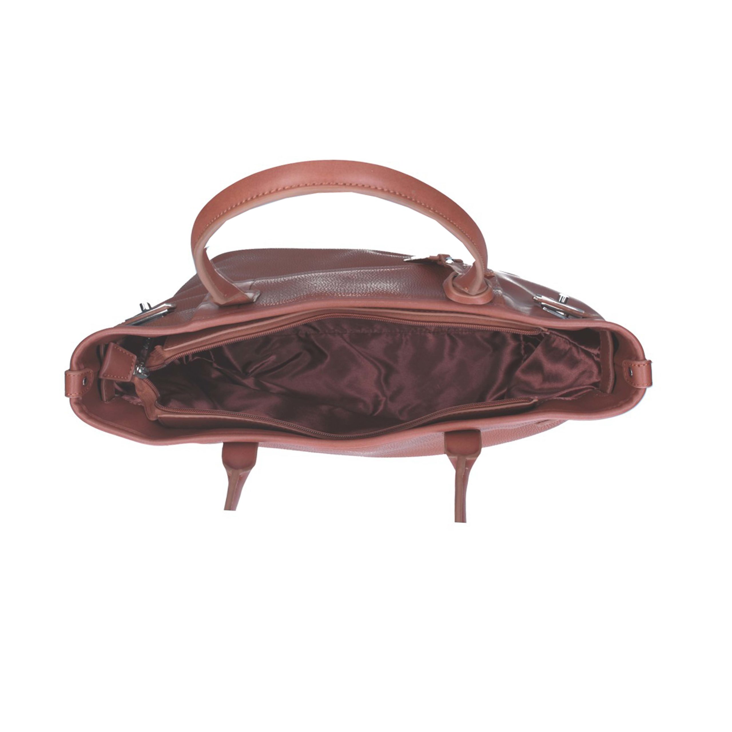 Shopping a due manici in ecopelle, chiusura con zip,abbellita sulla parte anteriore da un pendaglio con marchio “Silvy” e da una pratica tasca con zip. La borsa e’ foderata internamente, e’ molto ampia e possiede inoltre una doppia tasca portacellulare e taschina con zip. Sono presenti dei piedini metallici sul fondo per non danneggiarlo.