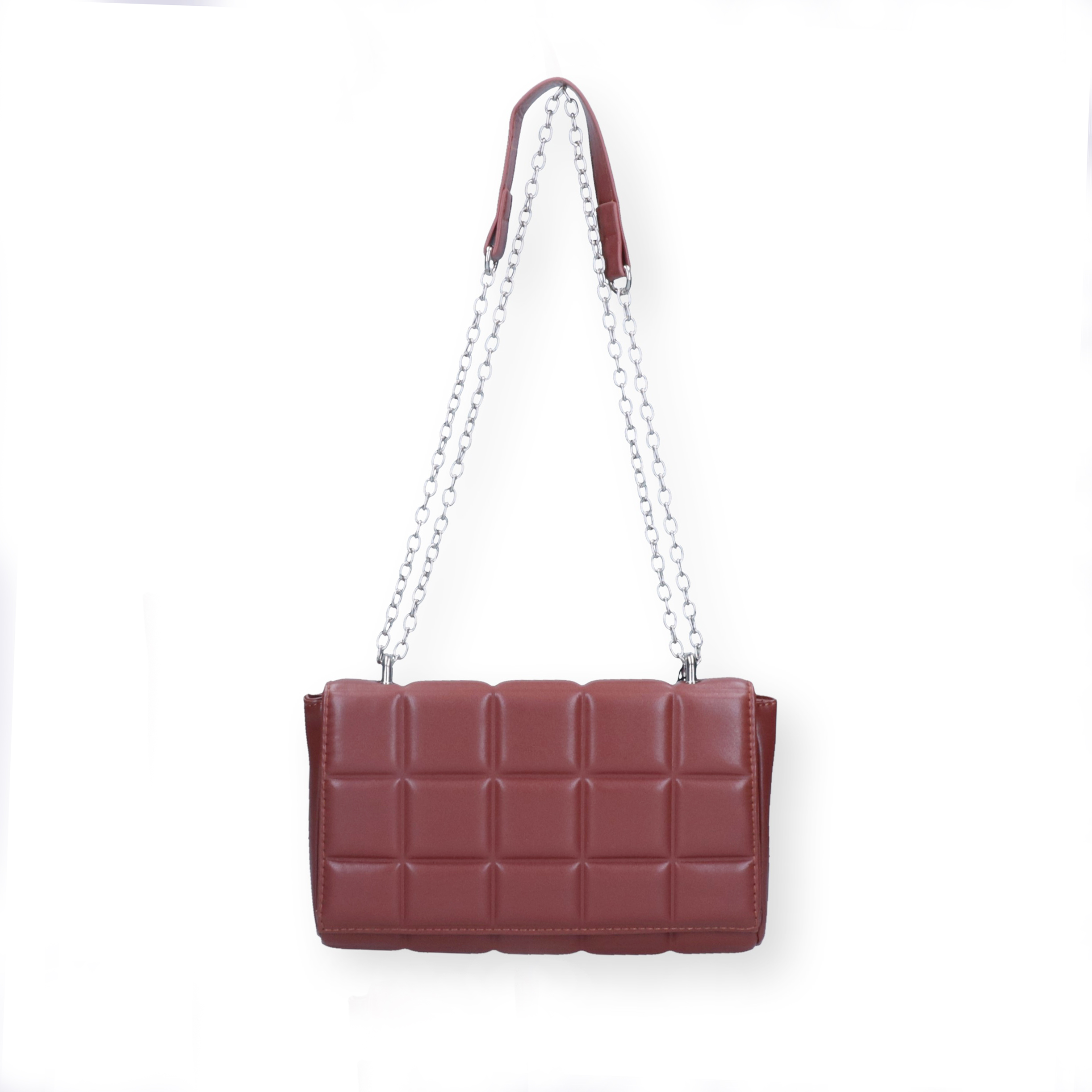 Shopping donna a due manici trapuntata a mano e spalla con catena metallica, interno foderato con divisorio