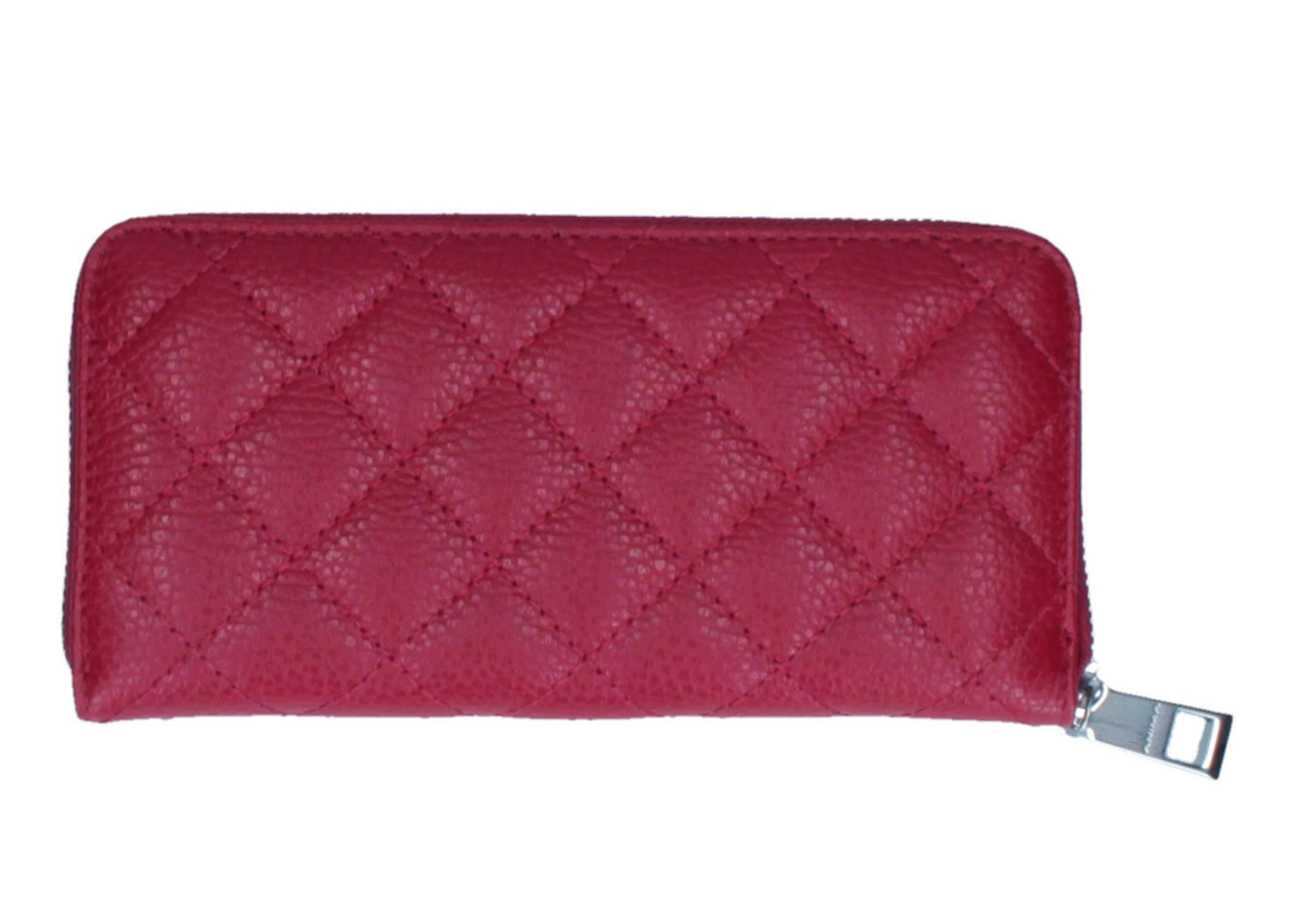 Portafoglio donna ziparound in pelle trapuntata, accessori logati, all’interno 2 soffietti, portatessere, portadocumenti, portamonete e portabanconte.