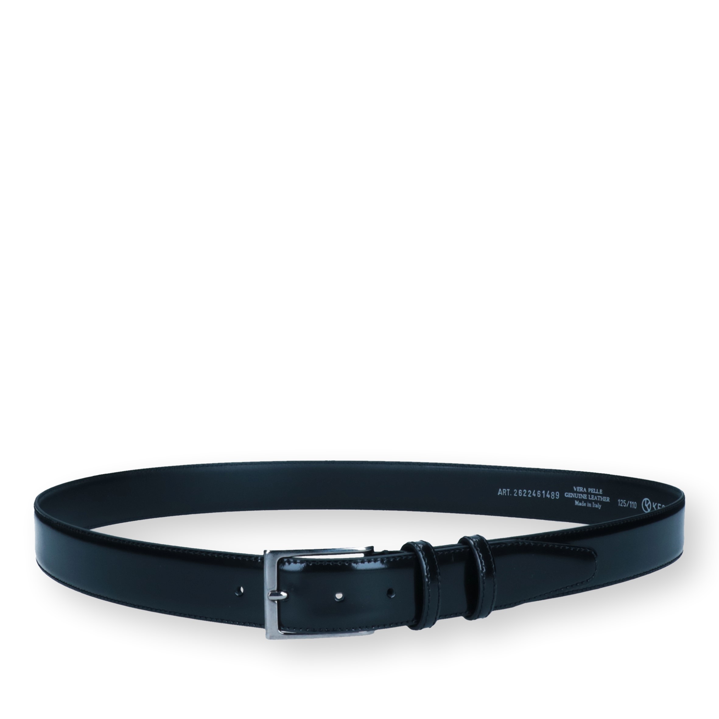 Cintura uomo in pelle liscia e lucida elegante. Altezza 3.5 cm. Retro cintura in vera pelle