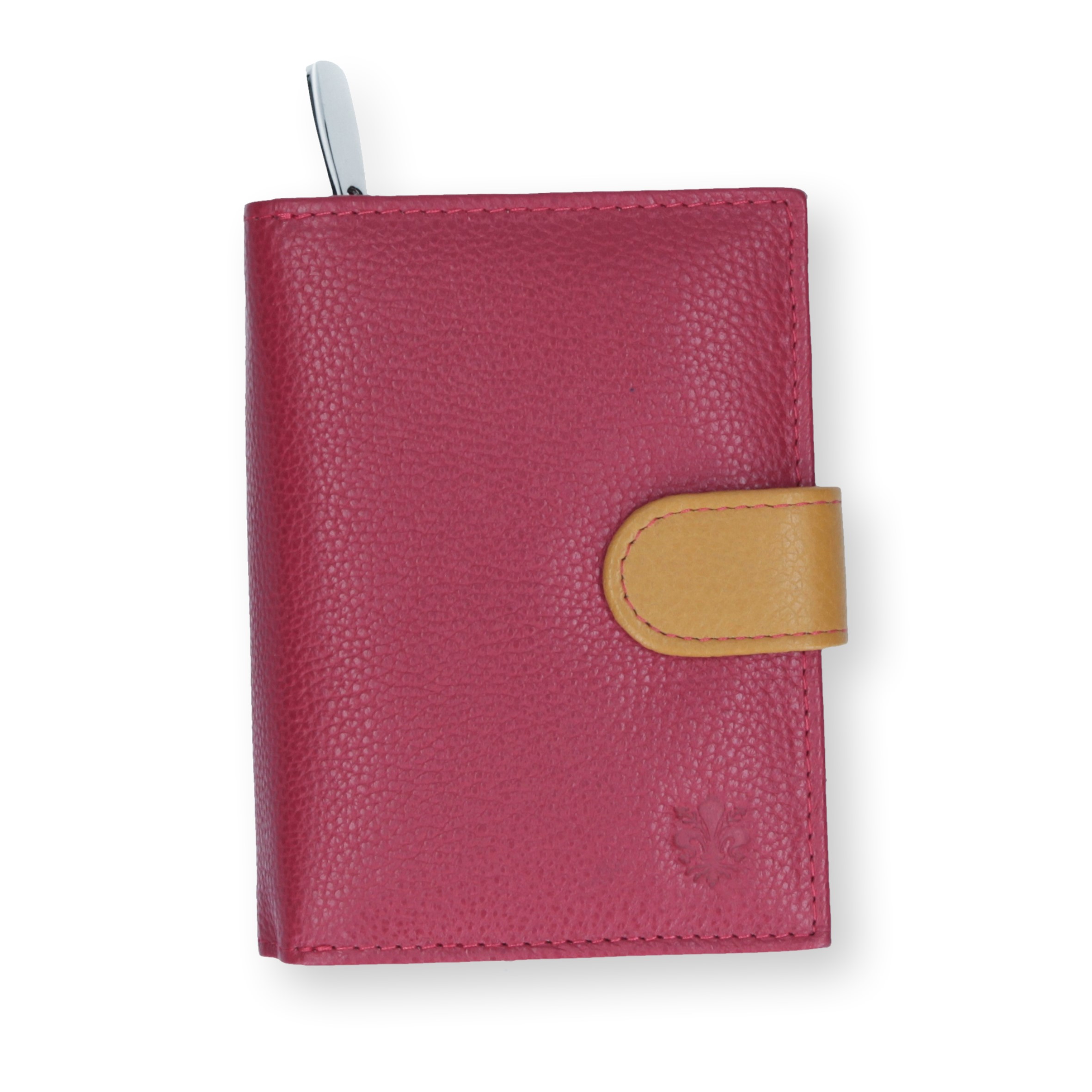 Portafoglio pelle donna liscia, doppia apertura a libro piu’ portamonete centrale. 12 portacarte. misura adatta ad essere utilizzata anche in piccole borse. particolare l’interno multicolor.